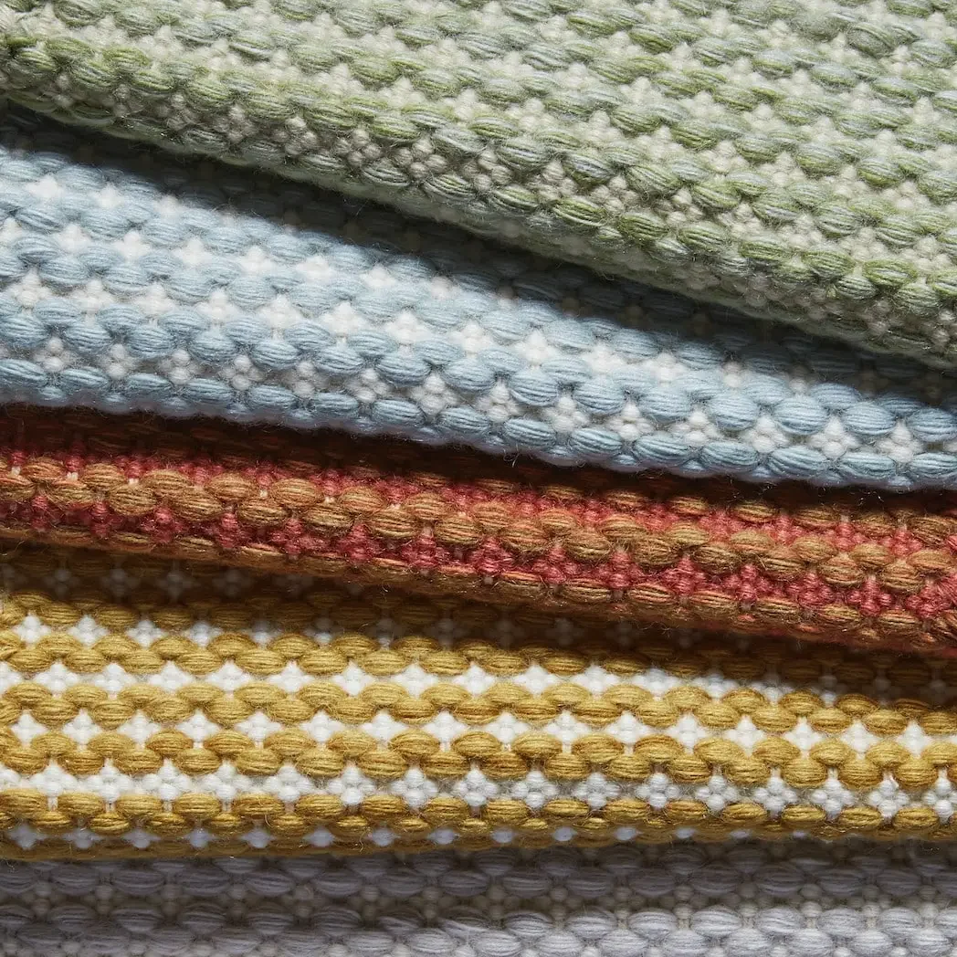 Finishing: Solid or striped whip stitched edge. Rugs are woven to be completely reversible.