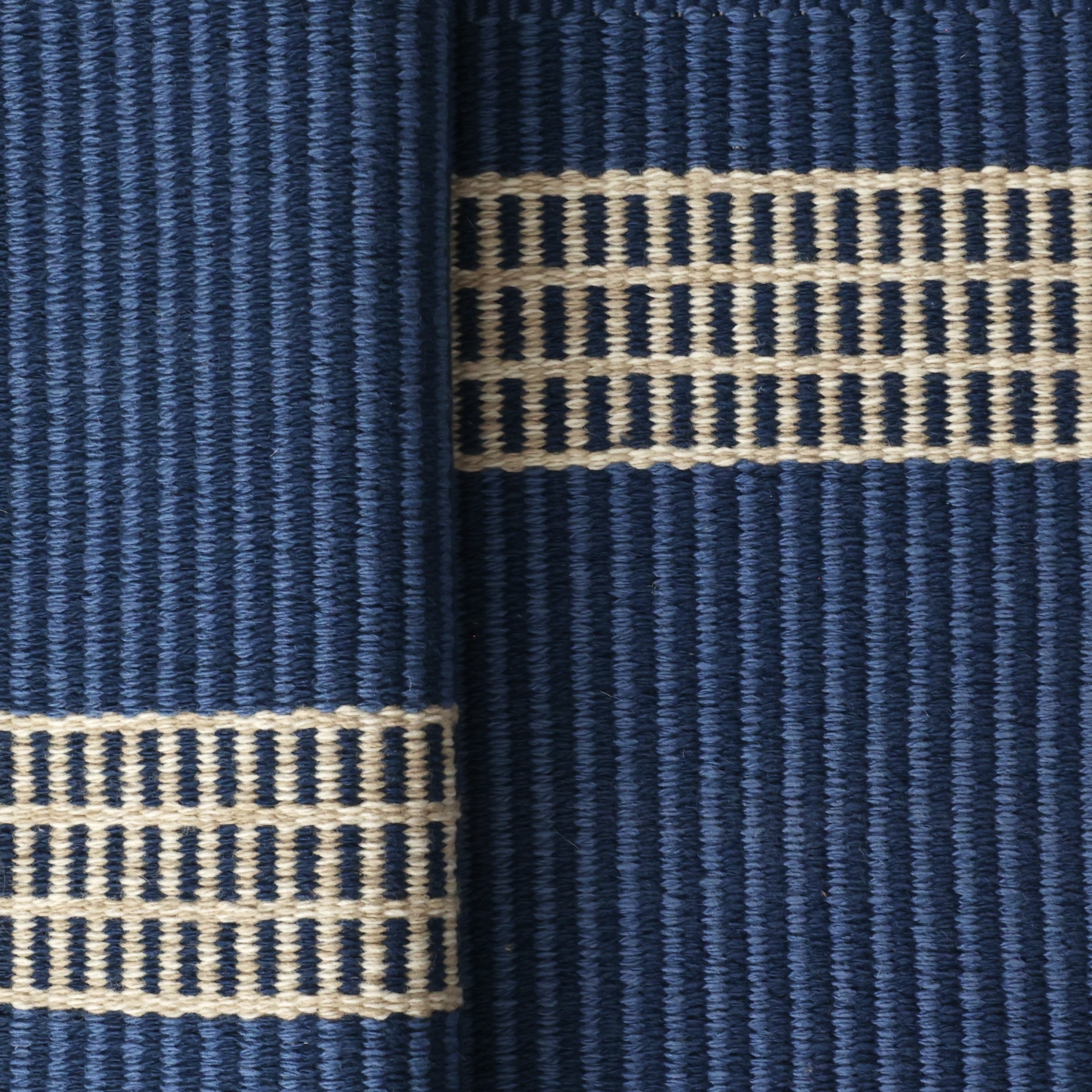 Finishing: The widths are finished with 1” rolled hem and lengths show the mill selvedge edge. Rugs are woven to be completely reversible.