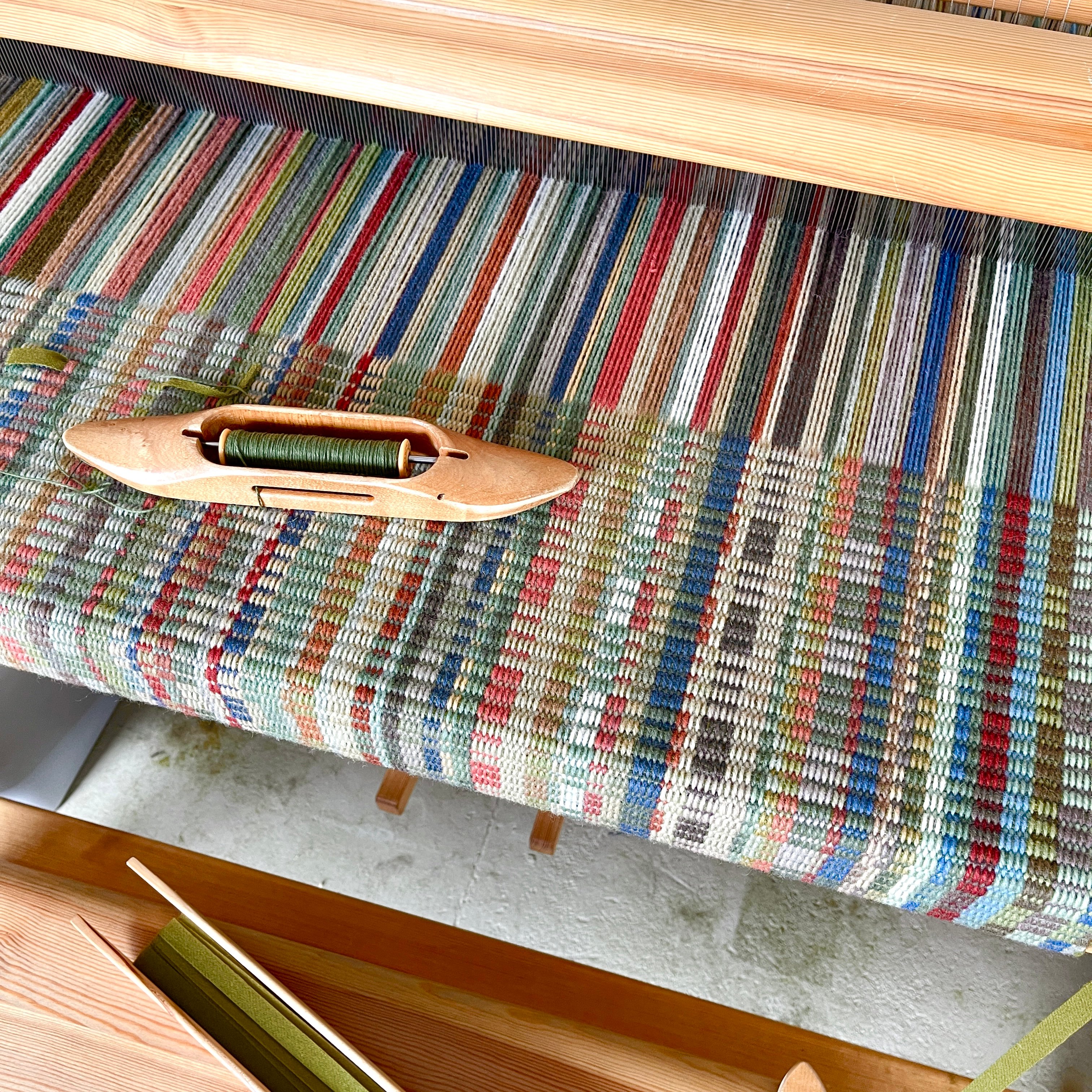 Max Weaving Width: Each single handwoven panel has a maximum width of 48”, based on overall pattern repeat. Full sized rugs are constructed by hand lacing an unlimited number of panels together.