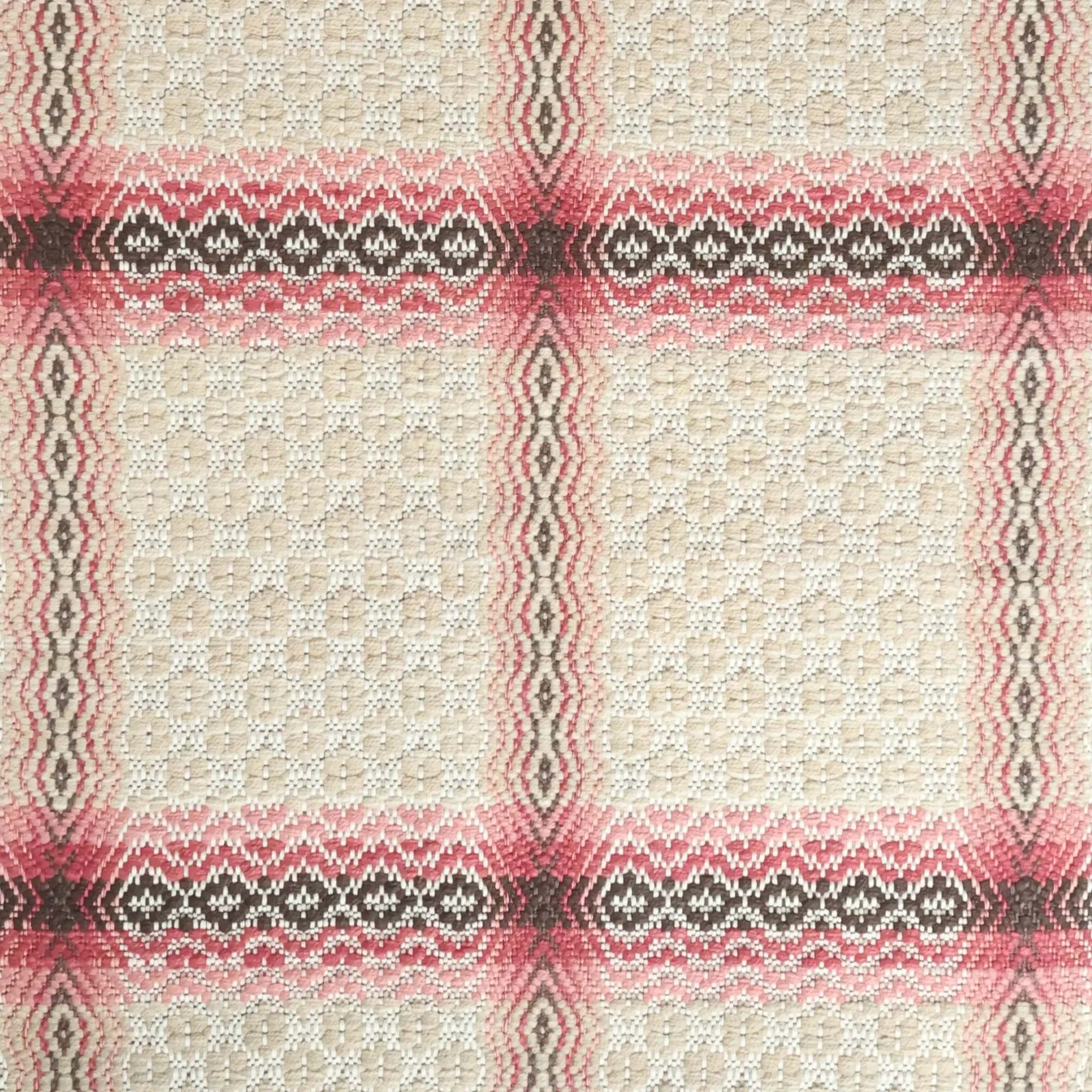 Max Weaving Width: Each single handwoven panel has a maximum width of 48”, based on overall pattern repeat. Full sized rugs are constructed by hand lacing an unlimited number of panels together.