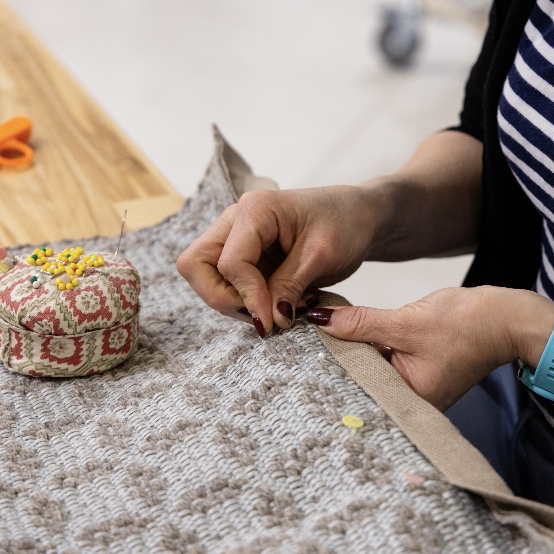 Finishing: Hand finished in our Connecticut Studio with a blind or reversible hem. Rugs are woven to be completely reversible.