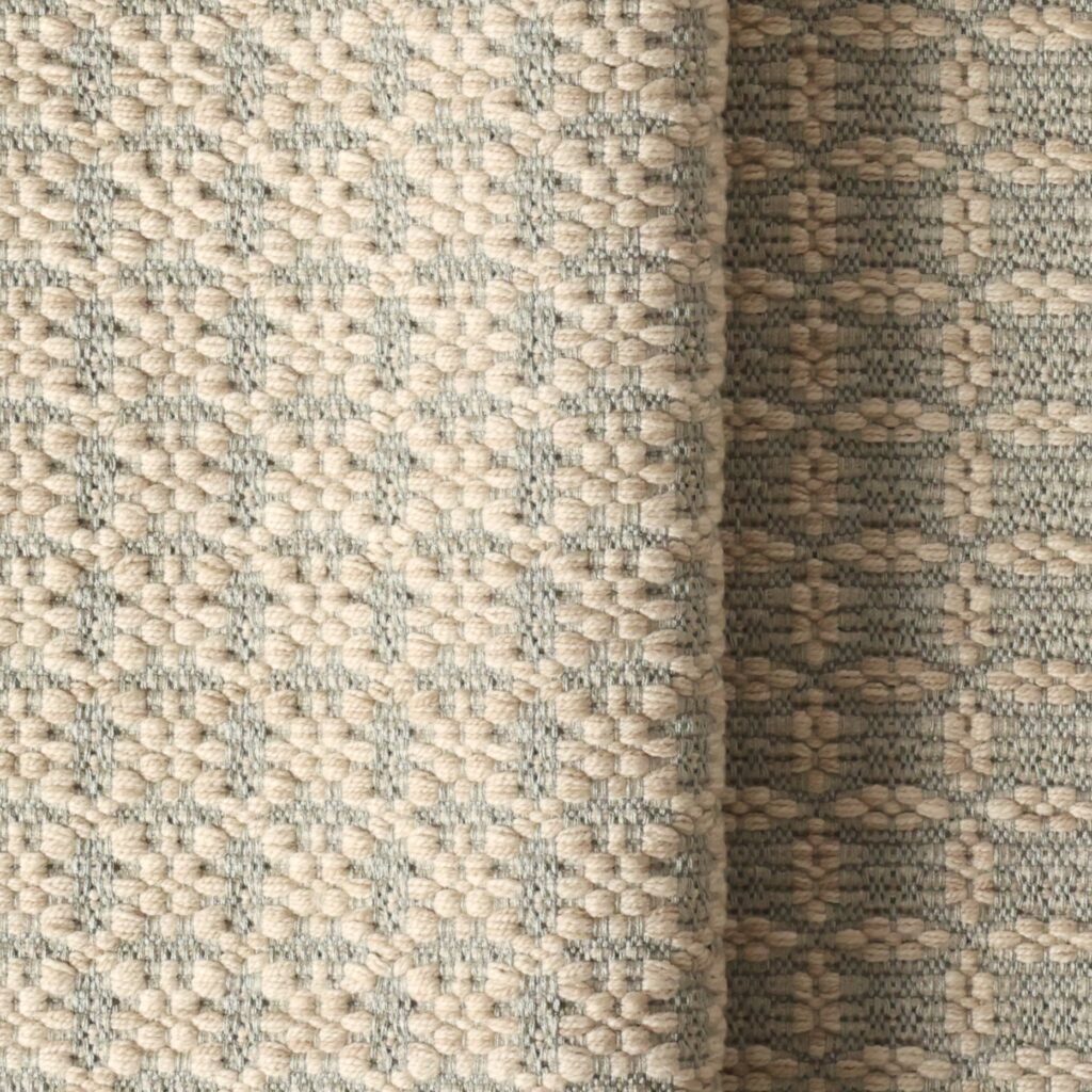 Max Weaving Width: Each single handwoven panel has a maximum width of 48”, based on overall pattern repeat. Full sized rugs are constructed by hand lacing an unlimited number of panels together.